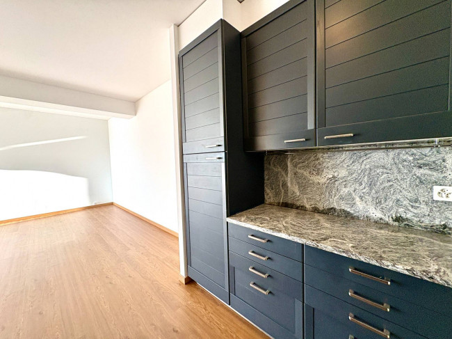 L'Appartamento si apre sulla cucina, grande soggiorno luminoso e camera matrimoniale che accedono alla terrazza che gode di incantevole vista lago.