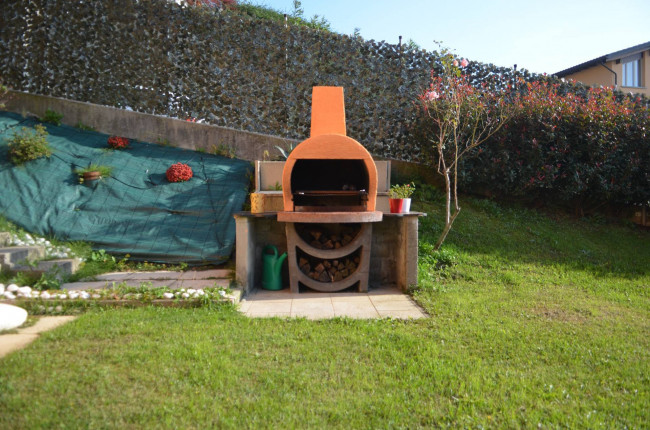 Esternamente la proprietà offre un giardino pianeggiante di circa 300 mq, completamente fruibile e ideale per momenti di relax all'aperto. L'area è arricchita da una zona piastrellata per pranzi e cene all'aperto, un barbecue in muratura, un camino esterno e una casetta porta attrezzi.