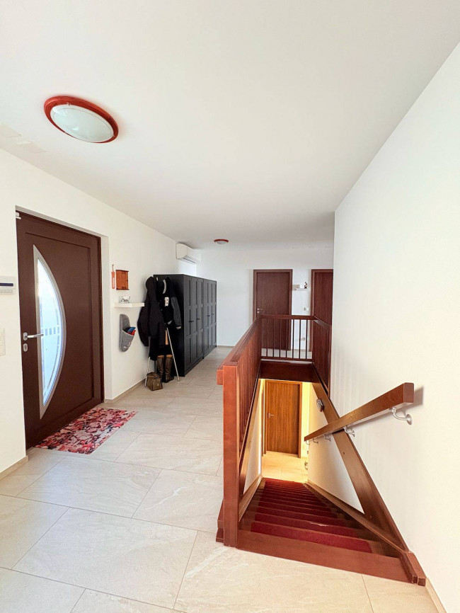 L'abitazione si sviluppa su due livelli ed è stata progettata con grande attenzione alla qualità abitativa, al risparmio energetico e ai dettagli funzionali. Al piano superiore si trovano tre ampie e luminose camere matrimoniali, affacciate sulla natura circostante, e una spaziosa sala da bagno dotata di vasca, doccia, bidet, doppio lavandino, scaldasalviette e finestra. Un ambiente accogliente e raffinato, pensato per offrire relax e benessere quotidiano.