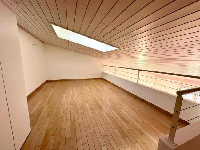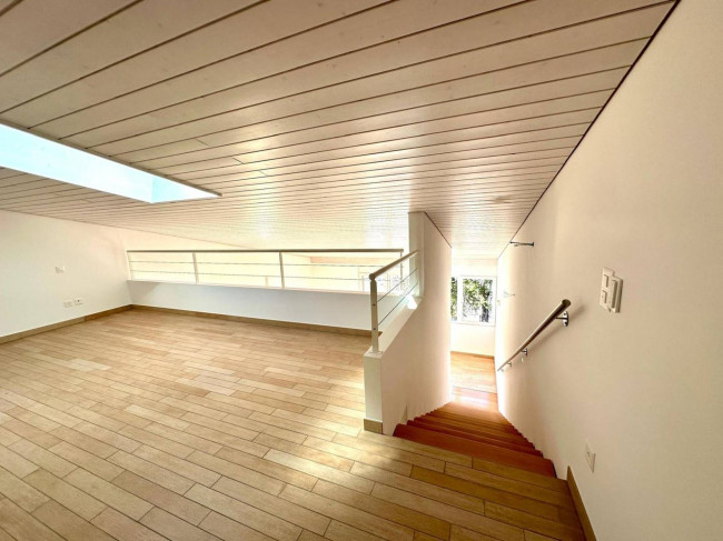 Il primo piano è interamente occupato dalla camera matrimoniale; dalla generora metratura con doppia esposizione, bagno privato dotato di vasca, doccia e doppi lavandini. Un accogliente soppalco completa questo livello, perfetto come studio, ufficio personale o spaziosa cabina armadio.