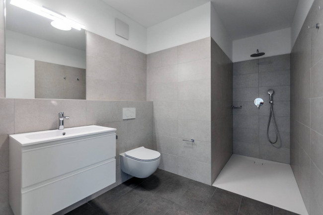 Le rifiniture sono eleganti e signorili, curate nei minimi dettagli; pavimento in parquet, cucine complete con elettrodomestici di ultima generazione, armadi a muro, bagni con grande doccia. Tende oscuranti elettriche, videocitofono. Impiantistica moderna con impianto di geotermia per riscaldamento e raffreddamento, ampio ascensore.