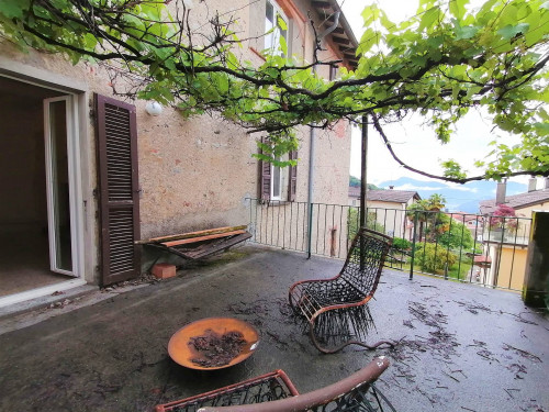 - soggiorno con camino d'epoca dal quale si accede all'ampio terrazzo con vista del lago in fondo;